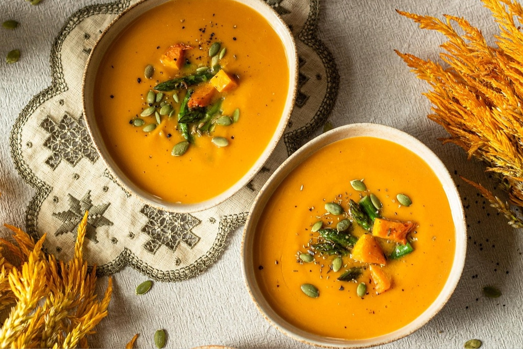 Sup Butternut Squash & Wortel dengan Biji Labu Panggang